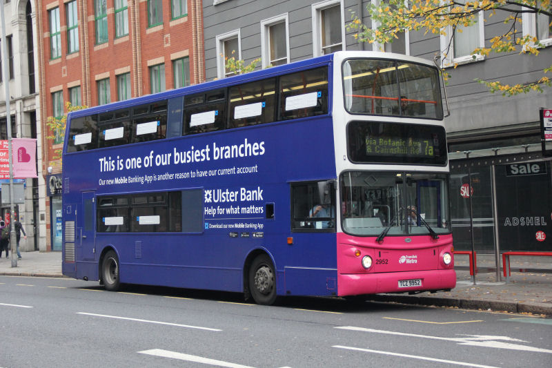 26/08/13 - Volvo B7 2926 has appeared with a rather austere wrap advert for Ulster Bank. 2 other buses are to have the same applied.