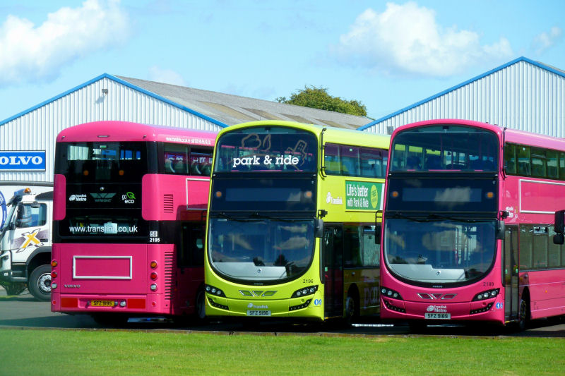 14/04/14 - Registrations SFZ 9177 - 9200 and SFZ 9383 - 9400 have been reserved for the forthcoming Volvo B5TL/Wright Gemini 3 double deckers 2177 - 2200 and 2383 - 2400. B9s 2331 (SEZ 2331) and 2352 (SEZ 2352) have been repainted allover Magenta with graphics applied for the Giro d Italia. Fire damaged 2944 (TCZ 9944) has gone to Hamill, Ahoghill for scrap.